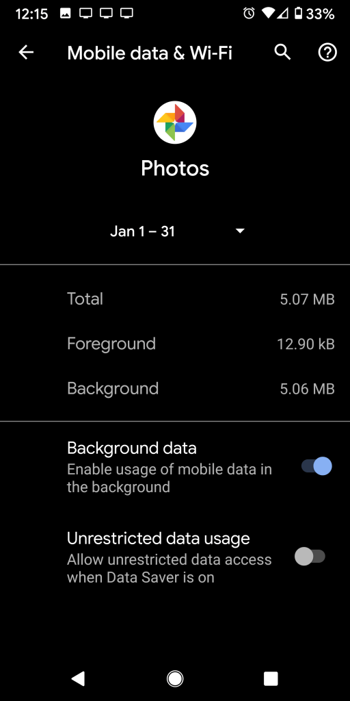 Some devices will help you distinguish exactly when an app is using data. Foreground and Background information found within the settings above will tell you how much data is being used when you’re actively using the app and how much is being used when you’re not interacting with the app respectively. Bear in mind, background data can be important for apps that need to run important processes like backing up your data, photos, or pinging networks for new alerts and updates.